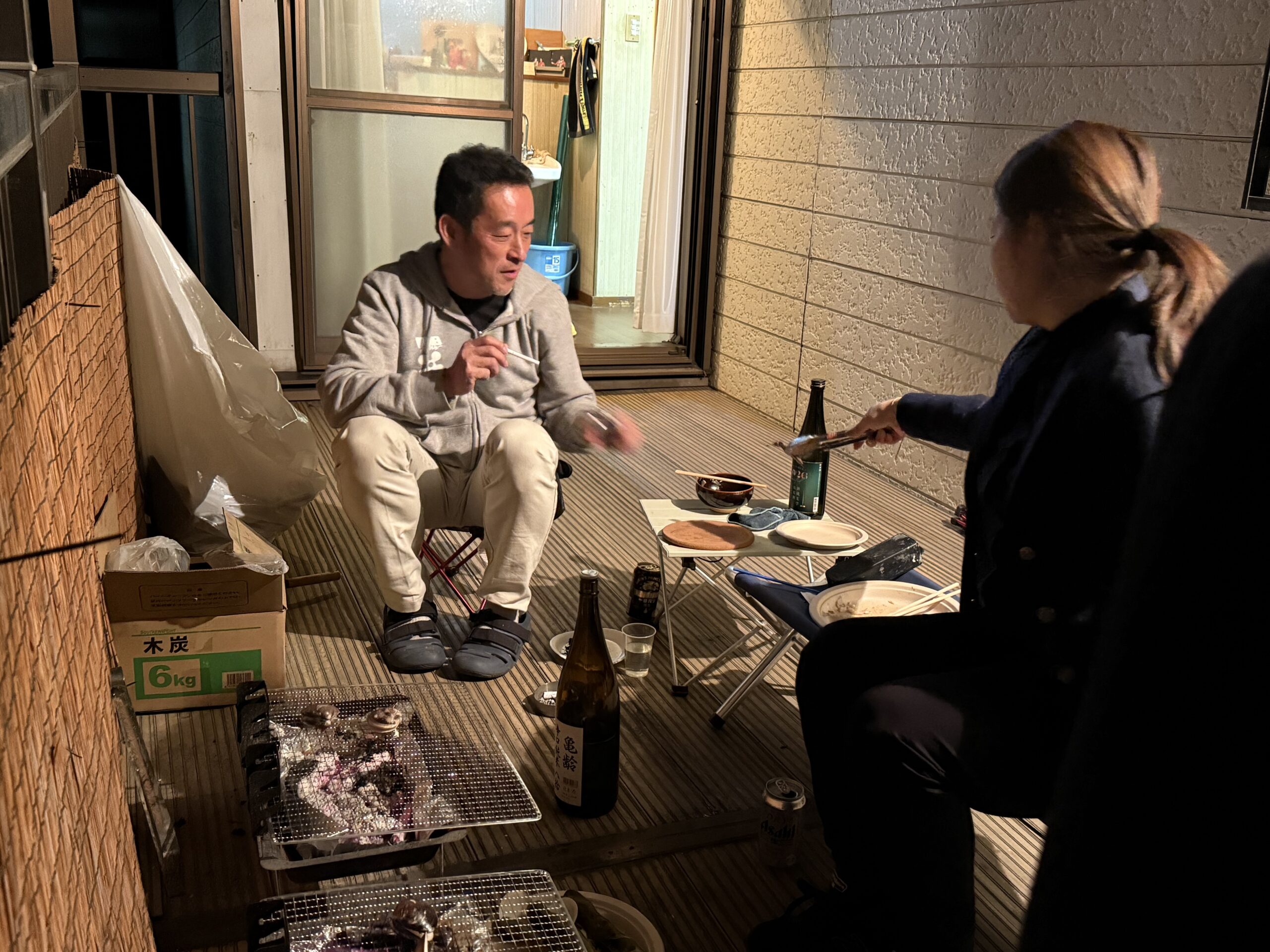 男性1人暮らしの同期宅のベランダで、
